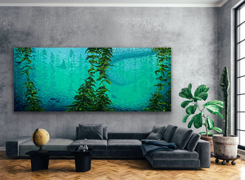 To engage my audience and show them an ocean teeming with life, its incredible vastness, and its immense possibilities, I paint and sell large-scale underwater ocean scenes. Free duvers who swim with great white sharks, marine biologists, scuba divers and simple lovers of the sea are some of my clients who have bought my ocean paintings. My objective is to show rich and breathtaking beauty and to begin a conversation about how to protect this beauty. Ireland has been a leading country in its effort to protect the sea and its creatures, and now living on tribal land in the Puget Sound, people are also very aware of the need to change. The objective is to turn this awareness into action. In my own way, I am trying to do my bit, like raising smelt and releasing them into the local waterways with my daughters and their school.